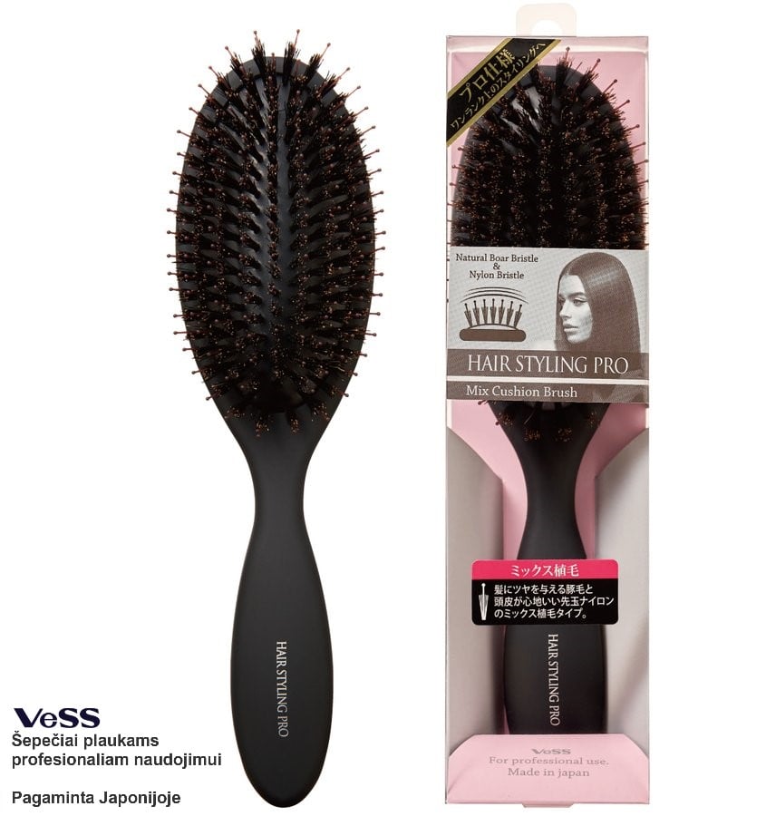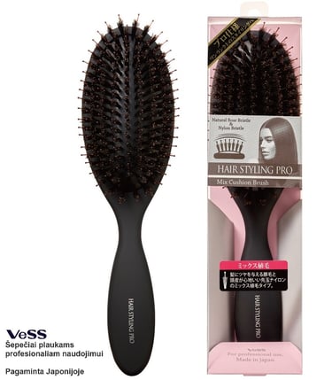 Kombinuotos sudėties plaukų iššukavimo šepetys „SPR-2500“ su žyma „HAIR STYLING PRO“ (profesionaliam naudojimui)