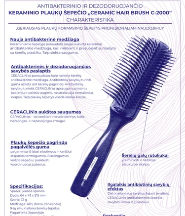 Keraminiai plaukų šaknų atkėlimo šepečiai „Ceramic Brush C-1500“ (7-ių eilių (trumpiems plaukams); kaina: 23 Eur) ir „Ceramic Brush C-2000“ (9-ių eilių (vidutinio ilgumo plaukams); kaina: 25 Eur).