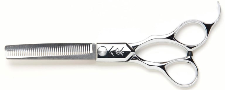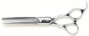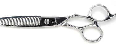 Filiravimo žirklės (europietiška briauna) su tiesiais žemyn nukreiptais dantimis; 40 dantų; kirpimo našumas: apie 40 % - 45 %; medžiaga: ATS314 Cobalt Stainless Steel; ilgis: 6.0 colio.