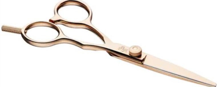Puikios aukštos kokybės žirklės. Rožiniu auksu padengti siauri iš aukštos kokybės kobalto lydinio pagaminti ašmenys yra aštrūs ir ilgaamžiški bei skirti visiškai tiksliam kirpimui. Dėl šiek tiek pakreiptos rankenos kirpimas yra lengvas ir mažiau pavargstama, o nuimama piršto atrama ir įsriegtas įveržimo varžtas užtikrina maksimalų komfortą. Visa tai yra padengta rožiniu auksu, su variu sumaišytu auksu, todėl žirklės atrodo puošnios.