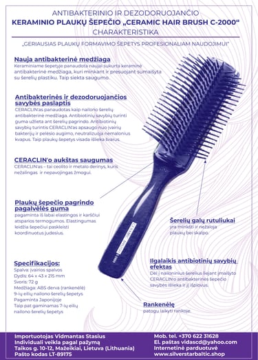 Keraminiai plaukų šaknų atkėlimo šepečiai „Ceramic Brush C-1500“ (7-ių eilių (trumpiems plaukams) ir „Ceramic Brush C-2000“ (9-ių eilių (vidutinio ilgumo plaukams)